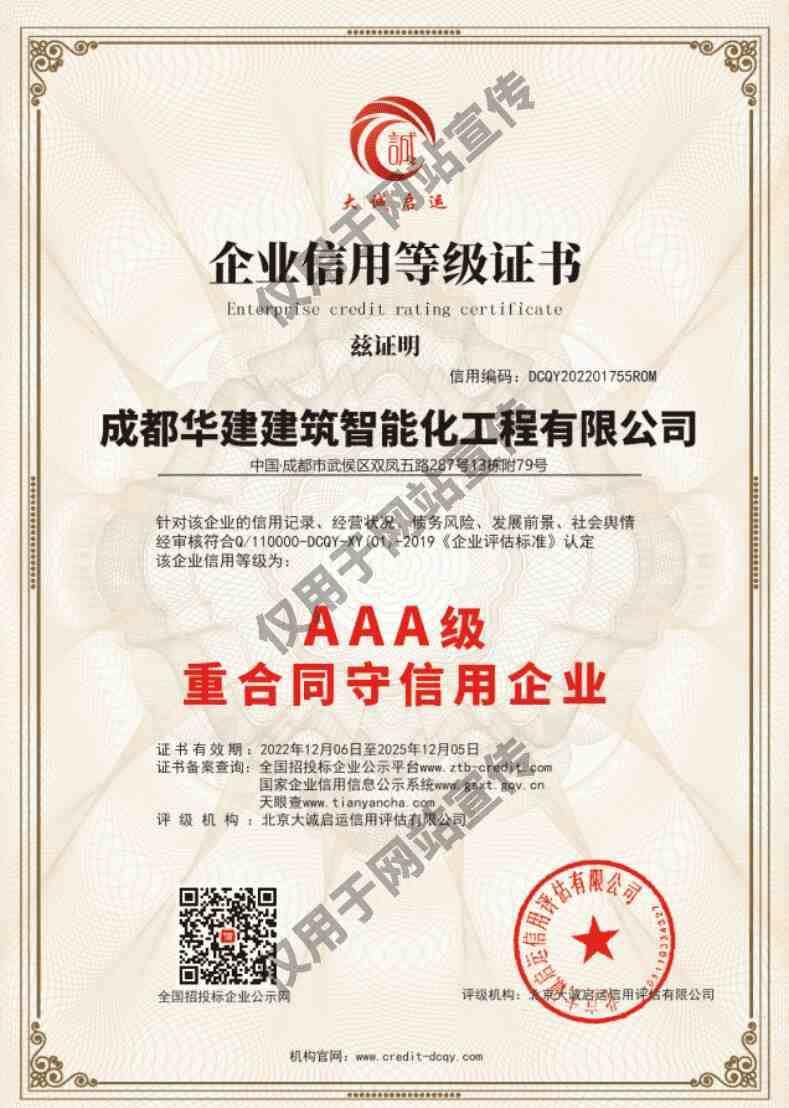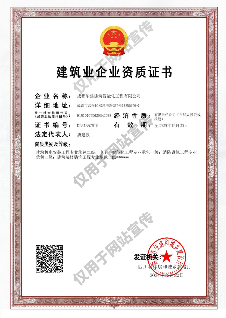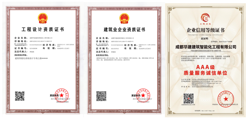 成都華建建筑智能化工程有限公司,19年專注弱電智能化工程、消防工程、建筑機(jī)電安裝工程的專業(yè)公司,具備電子與智能化工程、消防設(shè)施工程、建筑機(jī)電安裝、建筑裝修裝飾、建筑智能化設(shè)計(jì)等相關(guān)30余項(xiàng)資質(zhì)及證書。設(shè)計(jì)、施工和維保一站式服務(wù),多行業(yè)中大型成功交付案例。…
